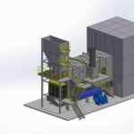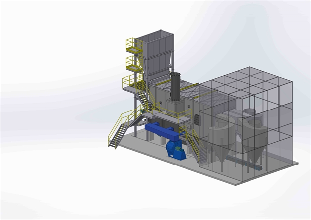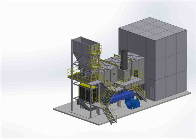 Fornalha com grelha mecanizada, própria para queima de combustíveis sólidos granulados, tais como carvão mineral ou vegetal, cavacos de madeira, biomassa, casca de arroz e outros combustiveis com alto teor de cinzas.